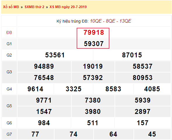Kết quả xổ số miền Bắc ngày thứ 2, 29/7/2025 ra như sau: