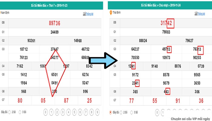 Cụ thể nếu 3 giải xổ số liền nhau xuất hiện 2 con số A – B sắp xếp theo hình quả trám thì anh em mạnh dạn đập ngay con bạch thủ B – A. Đây là một trong những cầu lô ít gặp nhất và không hay xuất hiện.